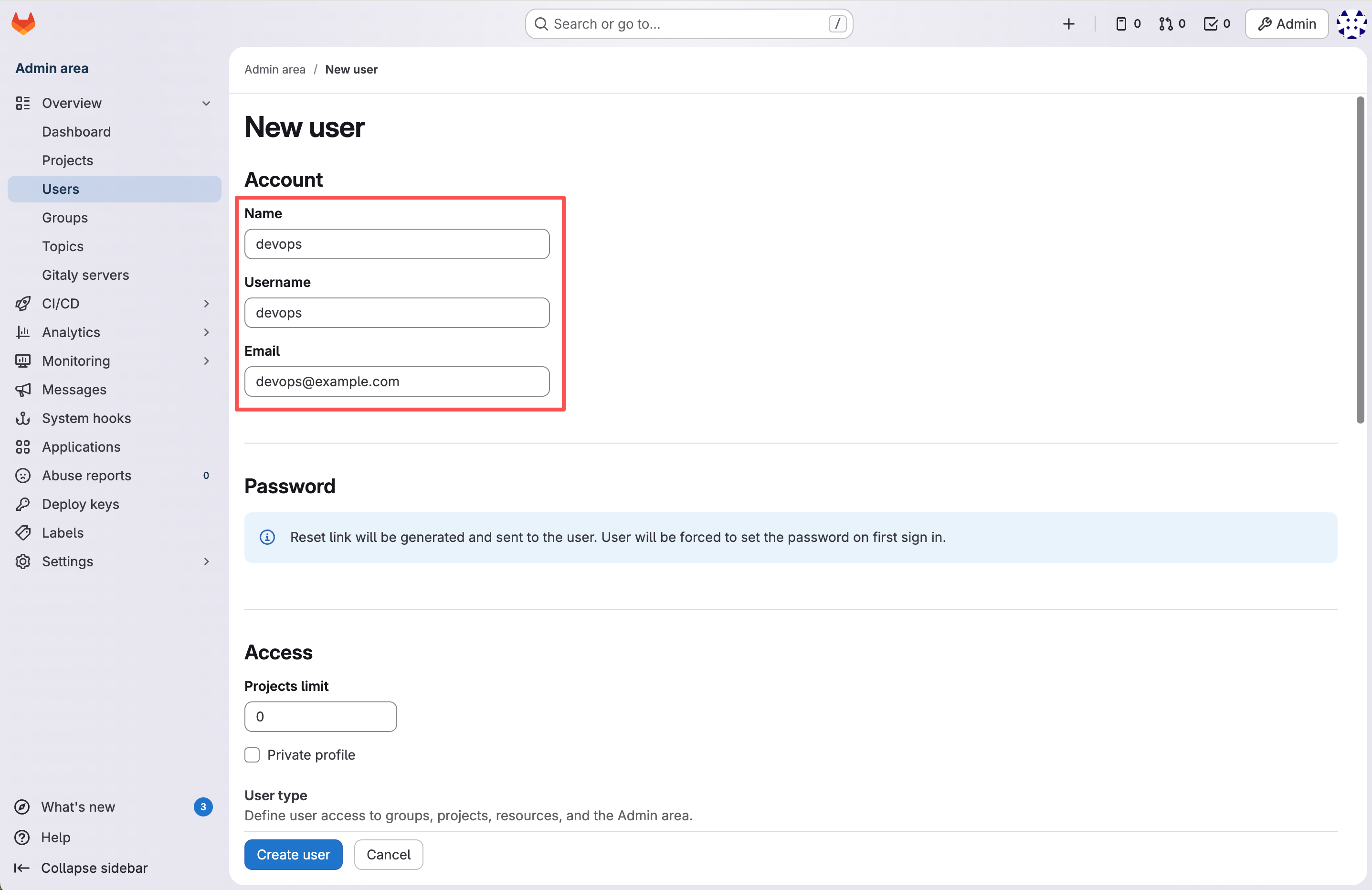 ⚠️ 注意:Project name 和 Project slug 保持一致