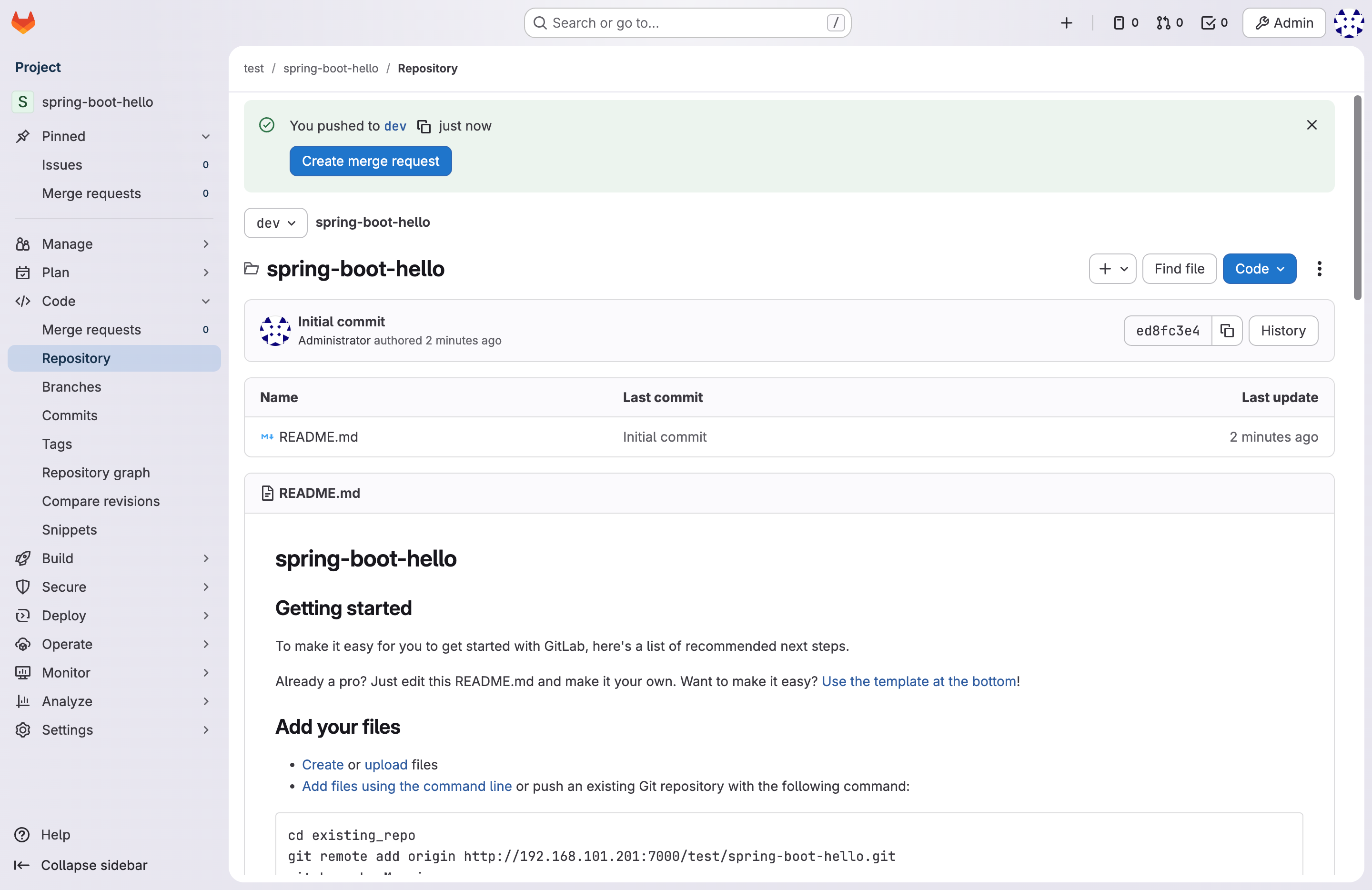 git clone http://192.168.101.201:7000/test/spring-boot-hello.git