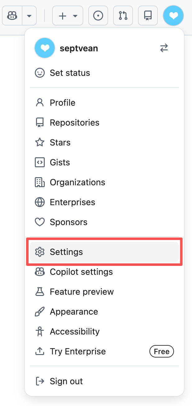 点击头像,选择 Settings