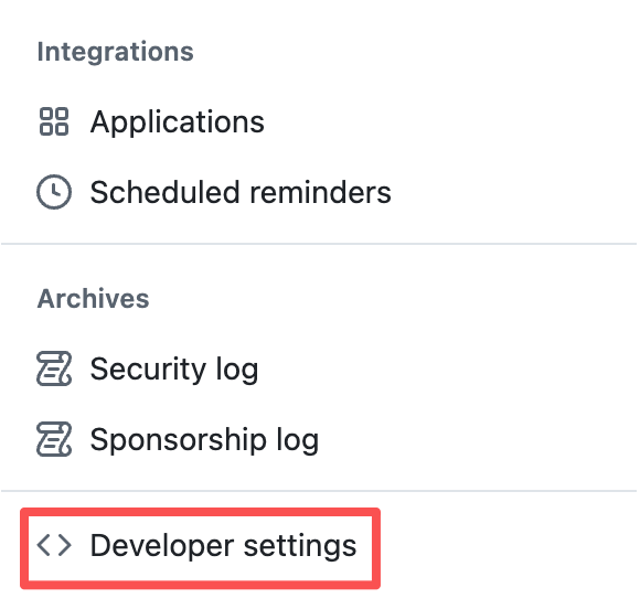 左侧菜单,最下边,选择 Developer settings