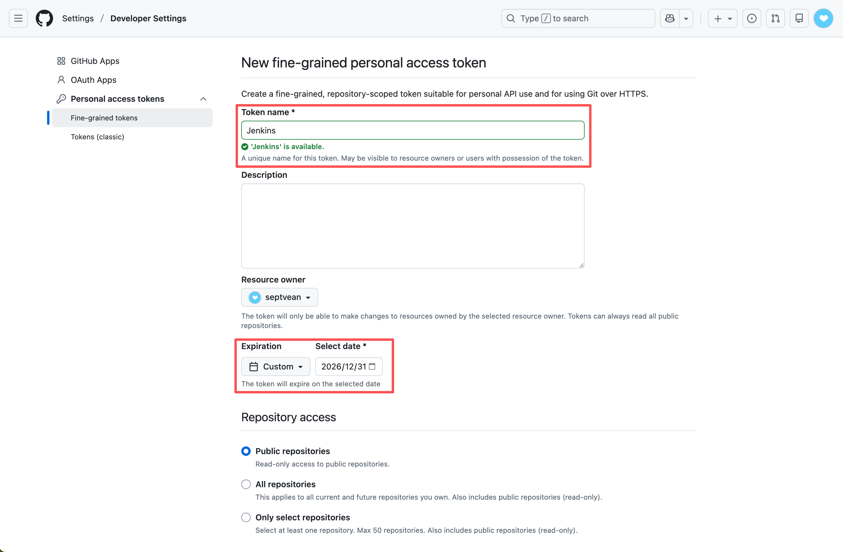 - Repository access -> All repositories (所有仓库)