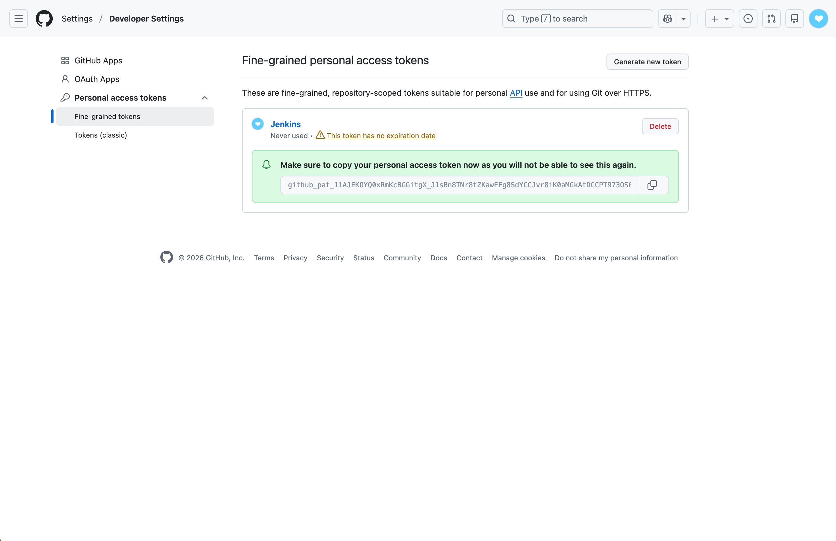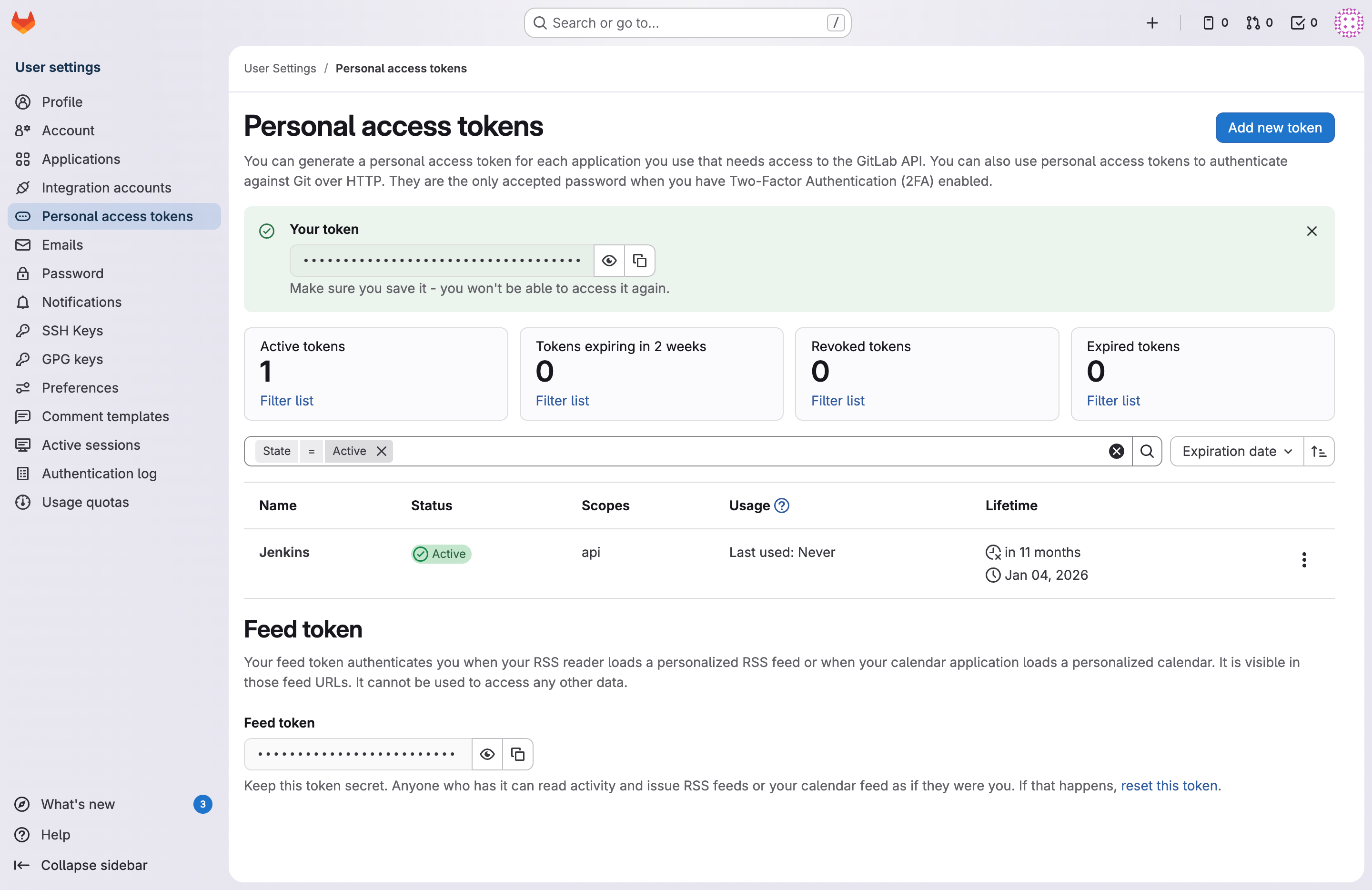 创建适用于 Jenkins 的 Token