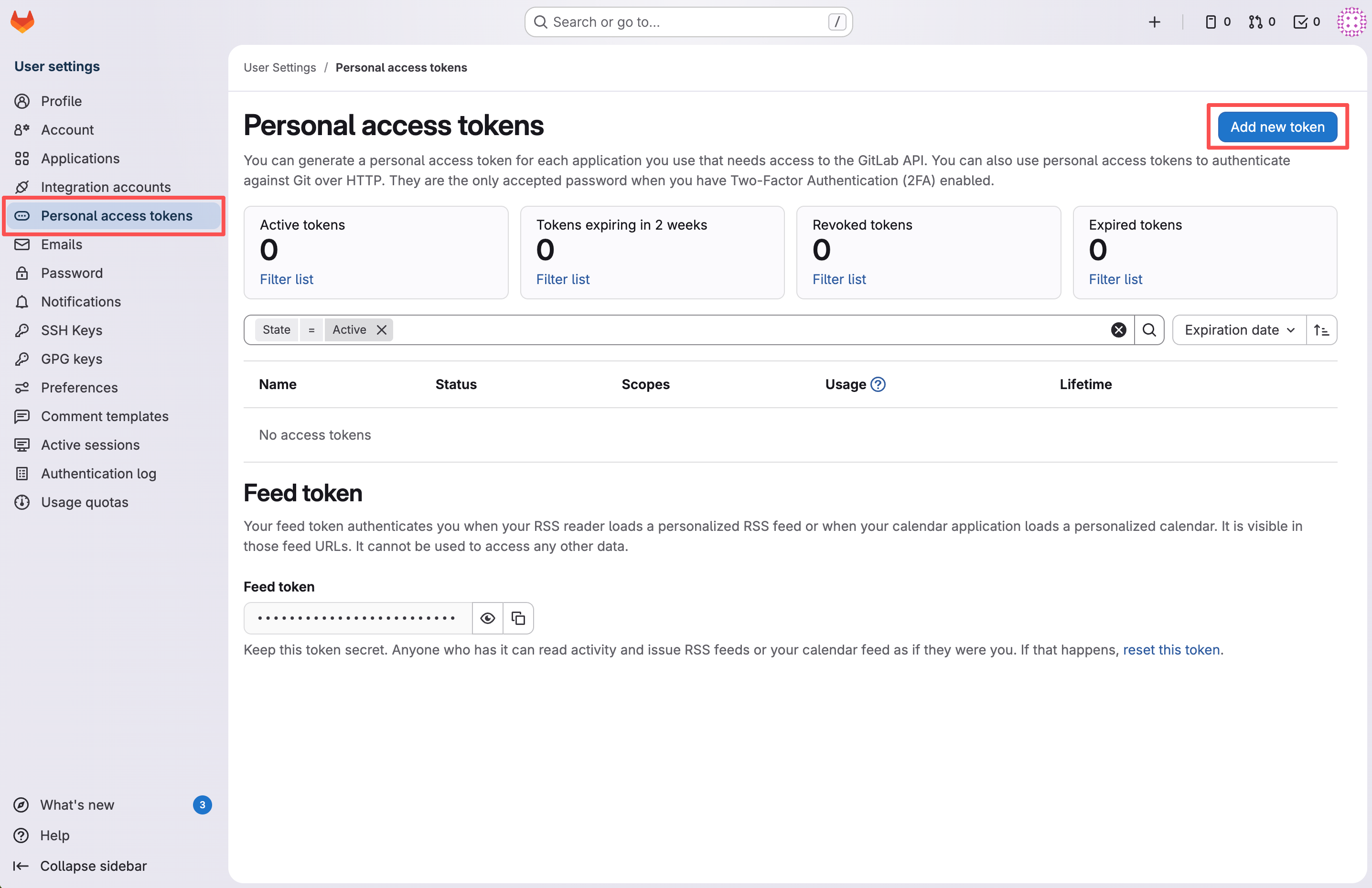左侧菜单,选择 Personal access tokens -> Add new token
