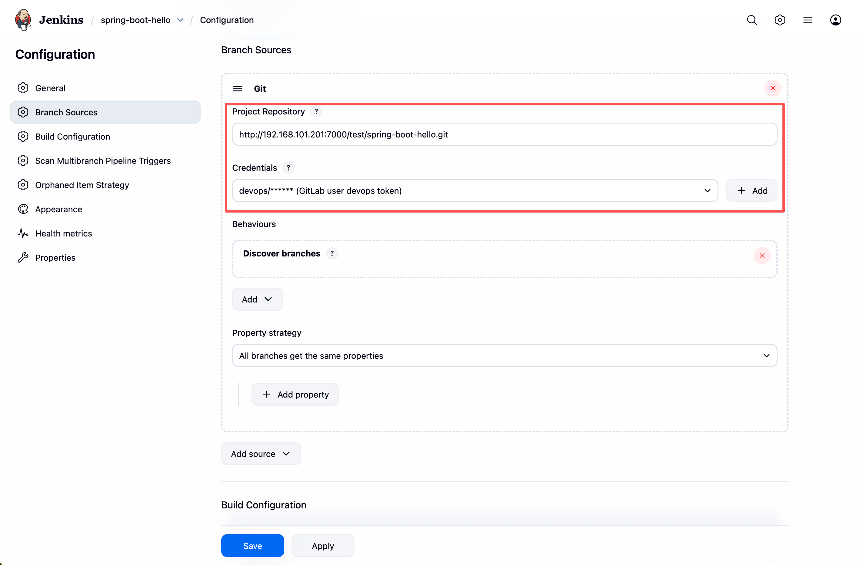 配置 Branch Sources