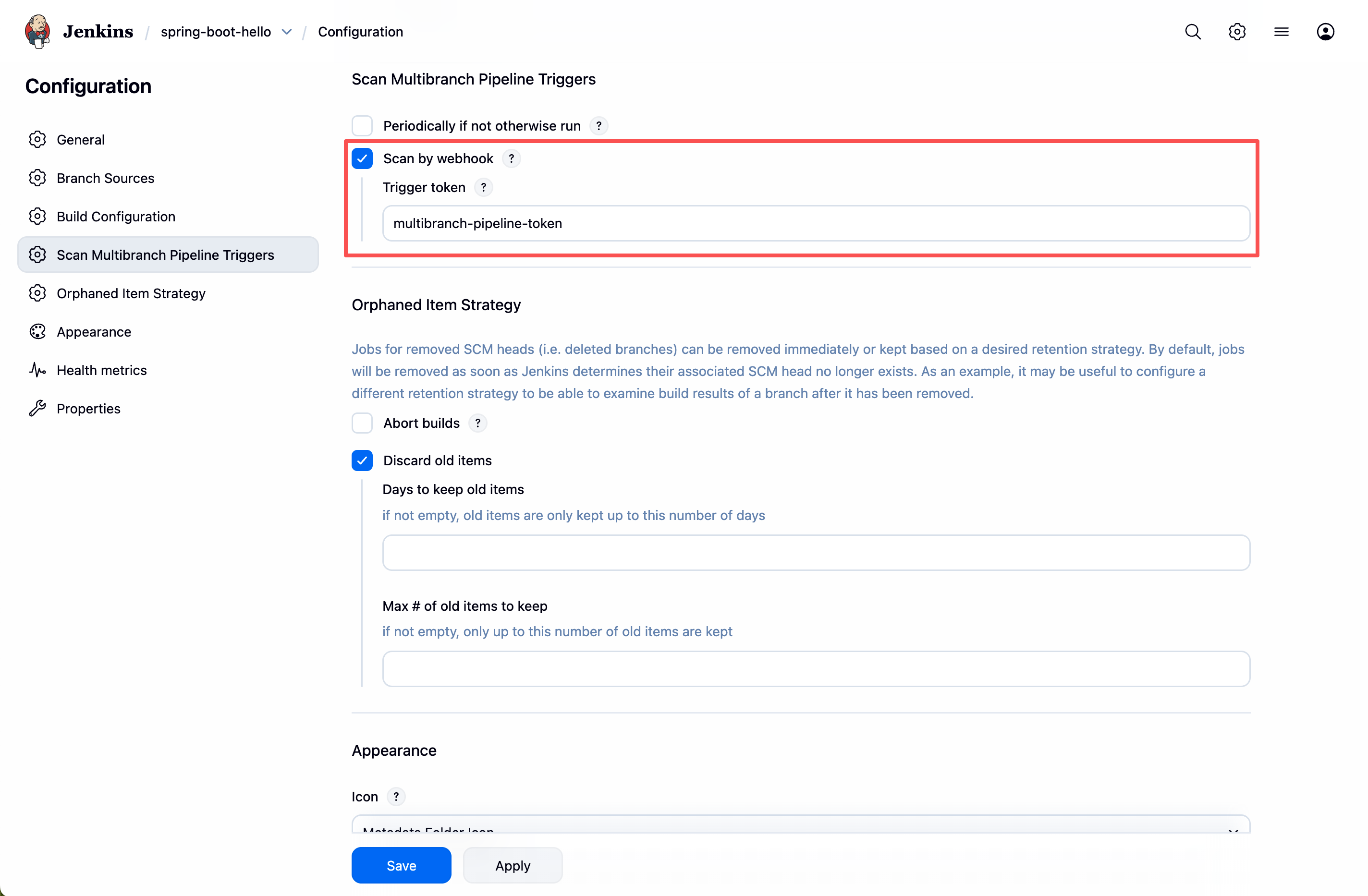 - 需要安装 Multibranch Scan Webhook Trigger 插件