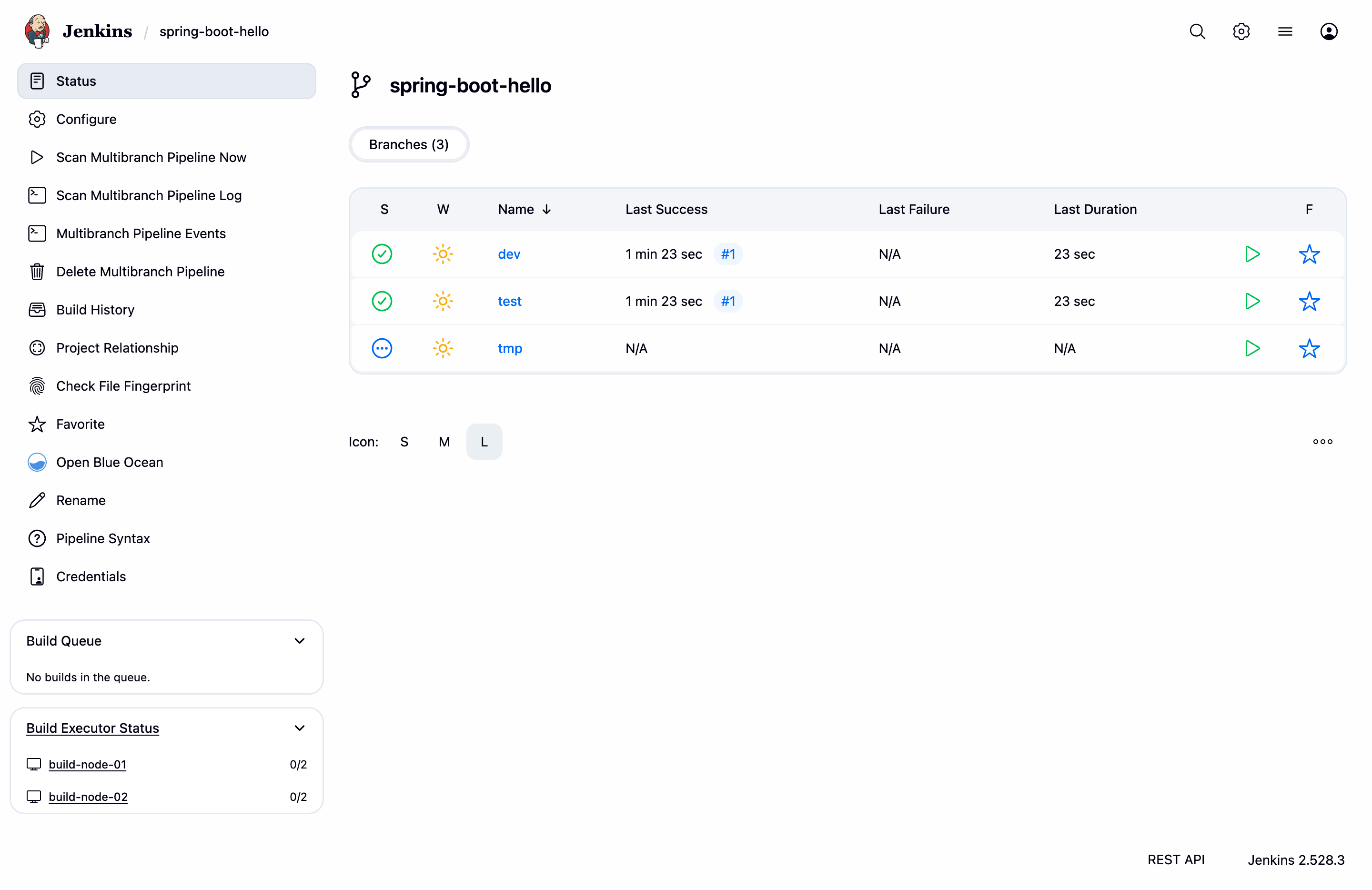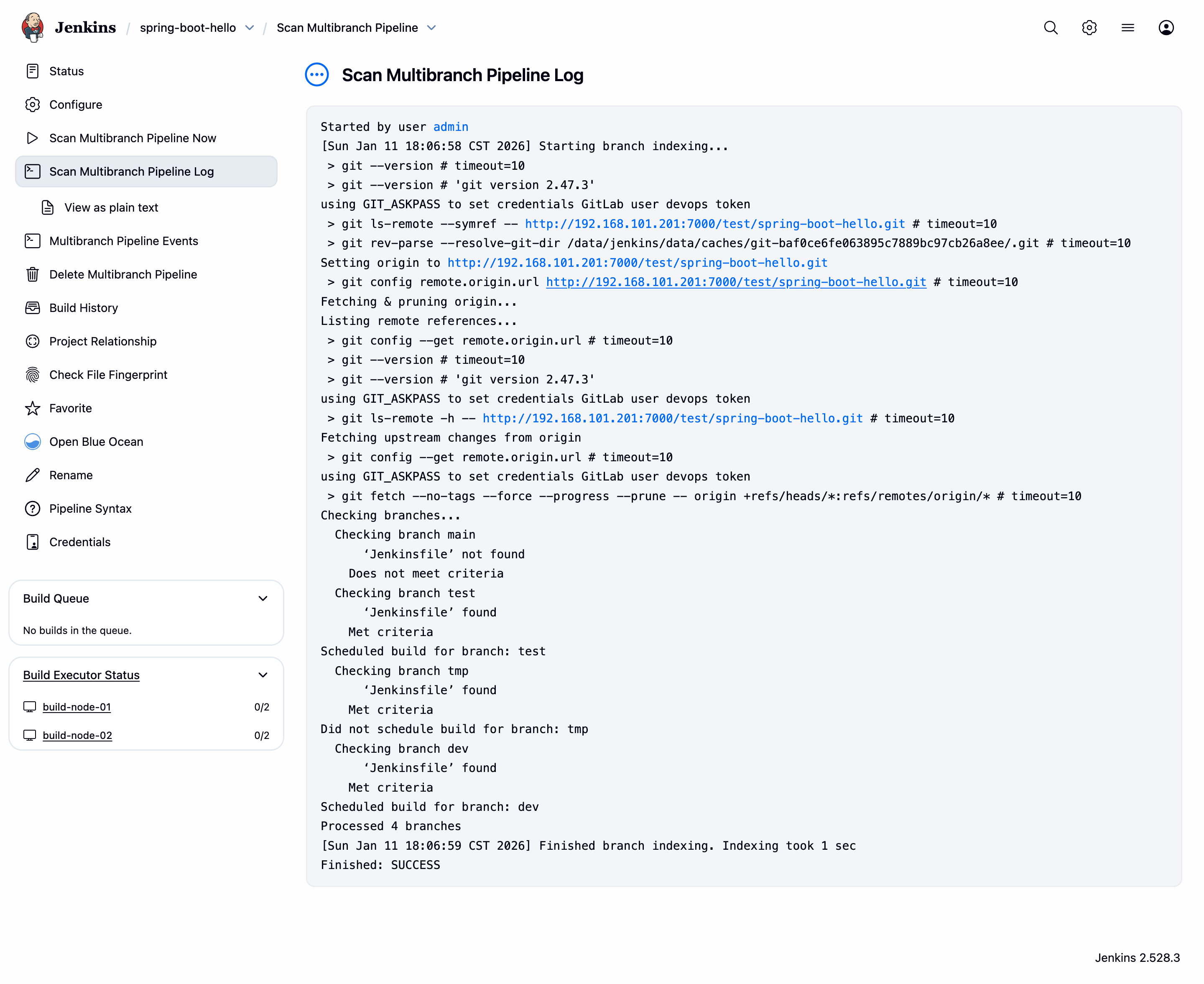 - 如果没有自动触发 Scan Multibranch Pipeline,点击左侧的 Scan Multibranch Pipeline Now
