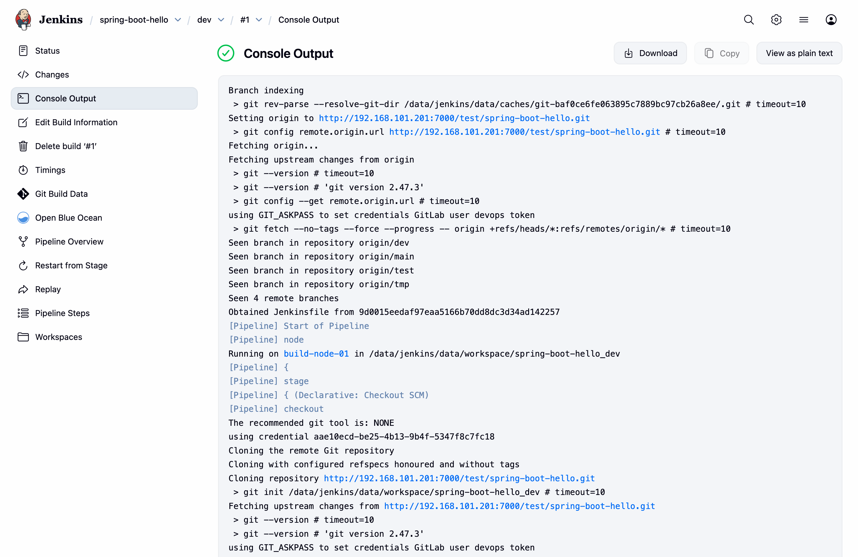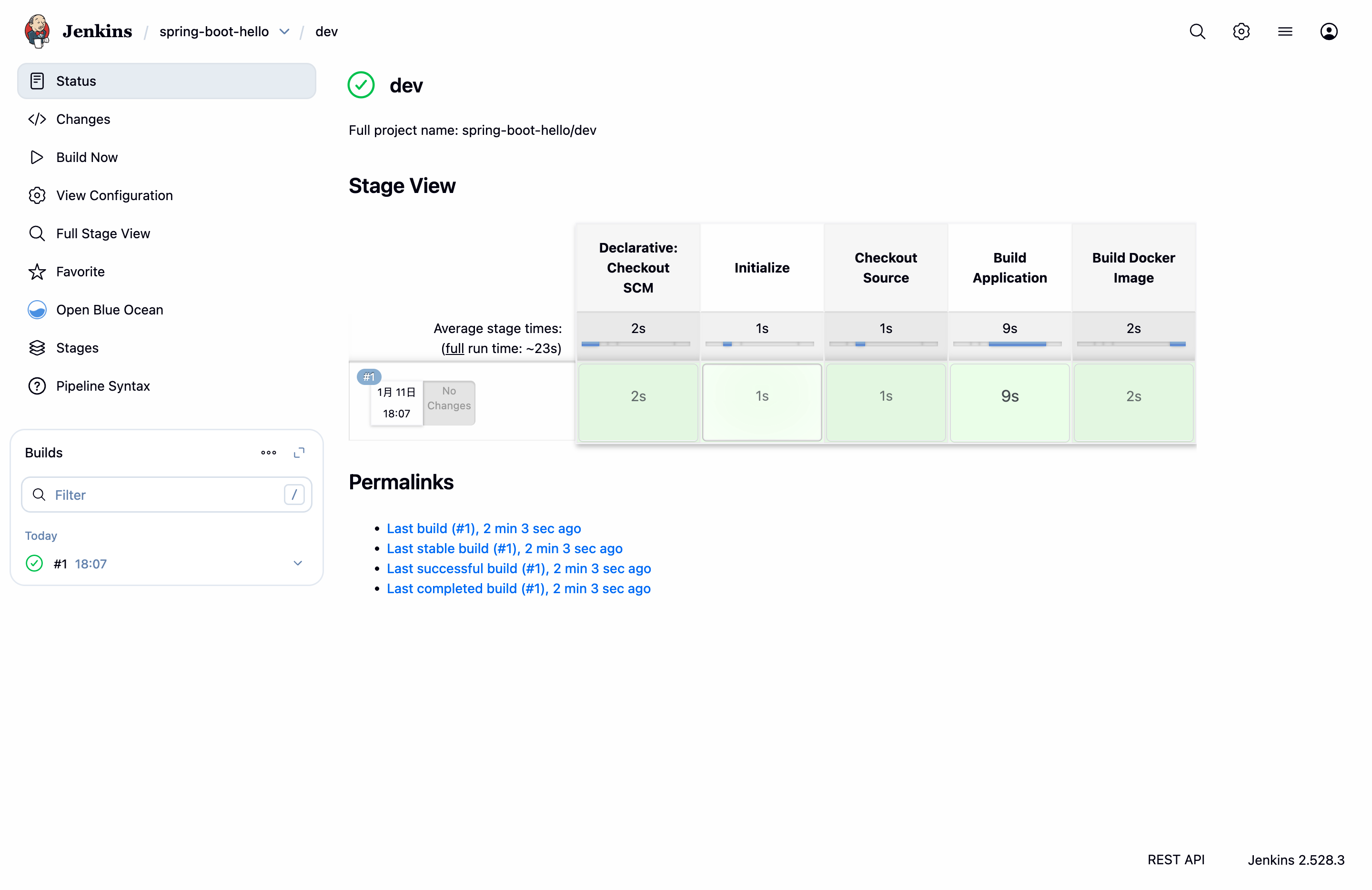 点击 Builds -> #1 查看构建状态